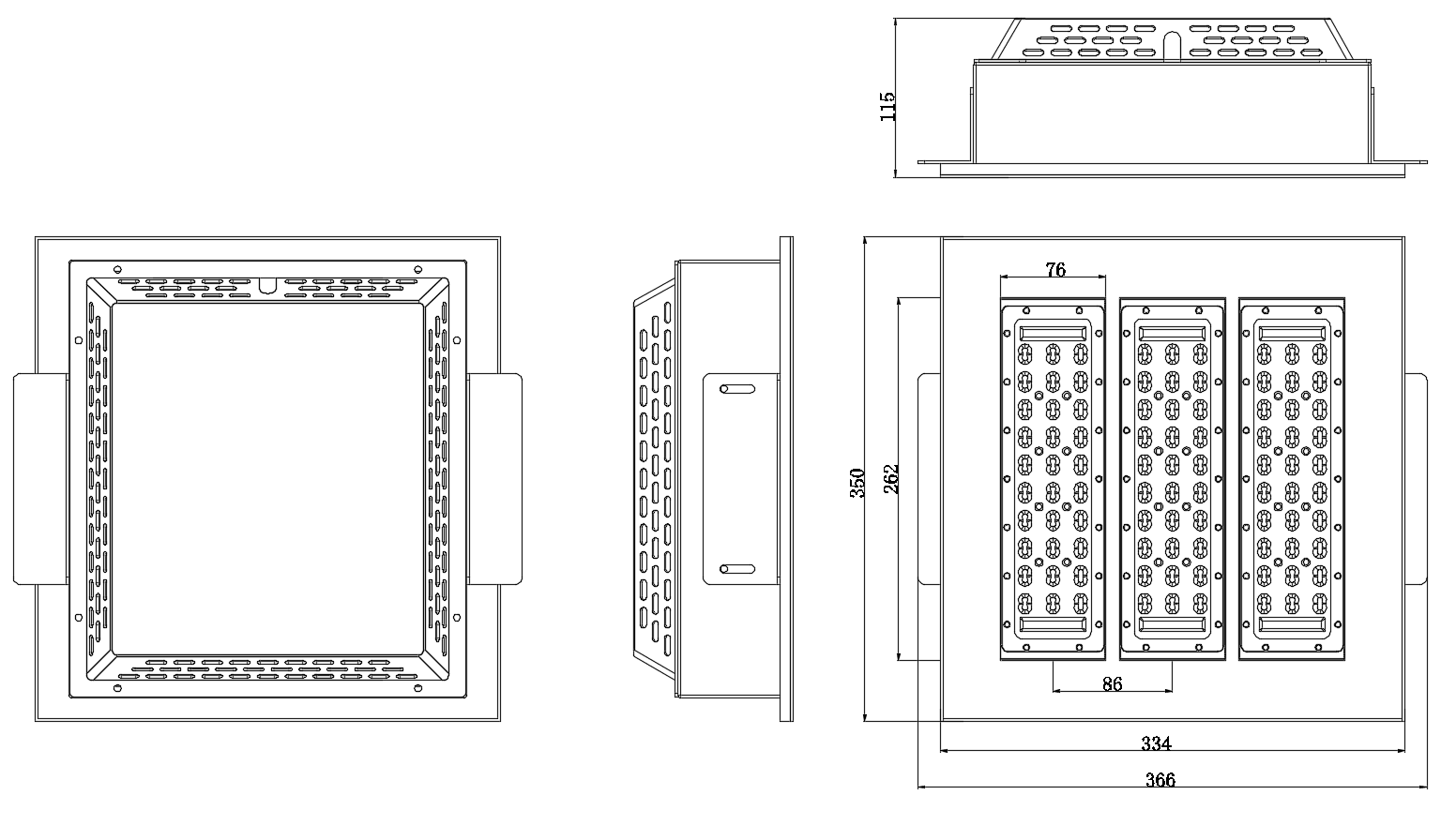 散热器表面处理采用阳极氧化工艺处理,边框及支架采用环保喷涂处理,耐腐防锈;灯体多道防震结构,具有较强的抗碰撞和冲击力;
